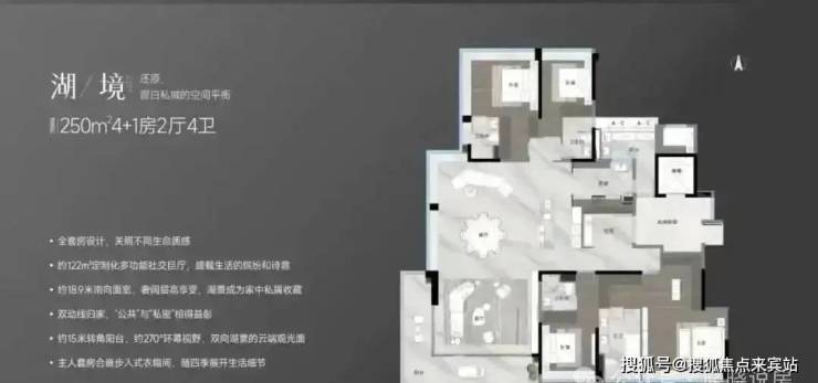 250平首开没有,大家先看看户型图解解馋,L型大阳台就是为湖景打造的,4+1房3主套设计,估计是很多人的dream house了。