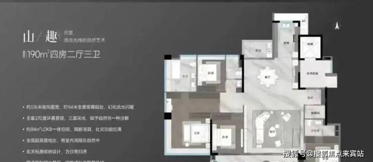 190平做了双阳台,对流采光max,部分户型有望湖的优势,大主卧配置,都顶的上一个小户型了,如果硬要找“喷点”,那就是厨房小了些。