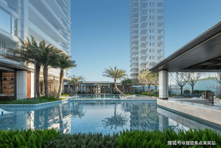 约700㎡会所级大型户外泳池,池水澄澈如镜,倒映着流云与天空,仿佛将一整片蓝天融化其中,宛若镶嵌在学林绿境中的一颗蓝色宝石,与自然园景和谐相融。