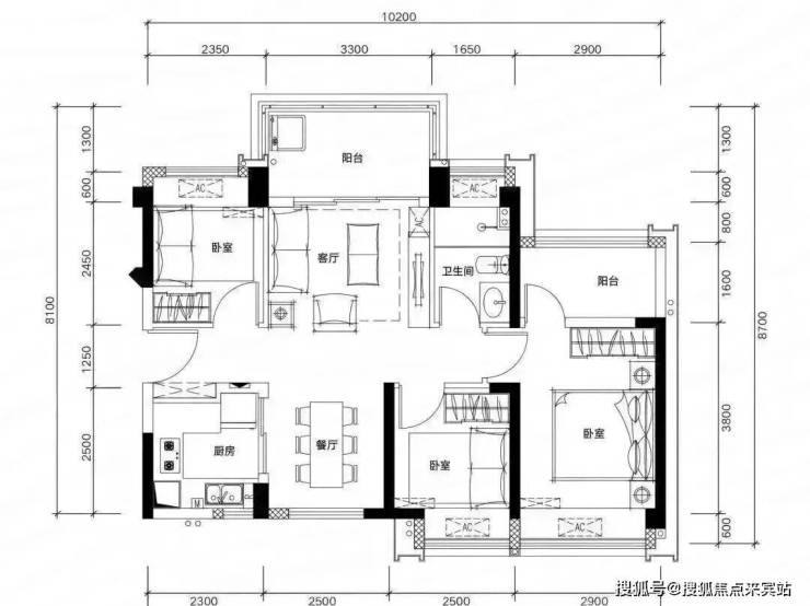 81㎡三房两厅两卫,空间利用极致,功能齐全。