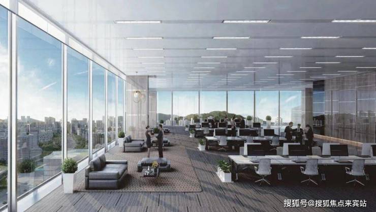 办公空间打造上,细节拉满彰显品质:10米挑高大堂搭配艺术雕塑与绿植墙,彰显企业高端形象;16部高速客梯+2部货梯,配比达1:4000㎡,候梯时间<25秒,高效规避通勤拥堵[1];每层独立新风系统(PM2.5过滤>95%)与共享协作区,搭配光伏屋顶、雨水回收、智能遮阳系统,能耗降低30%,打造健康、高效、低碳的办公环境[1]。