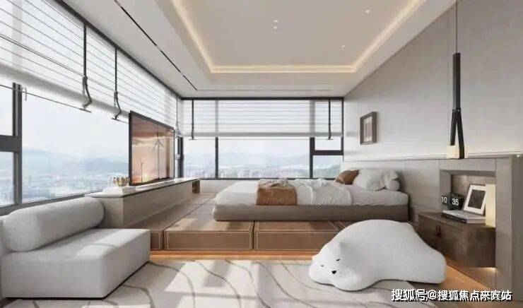 全景舱设计酒店式主卧套,270°景观飘窗,步入式衣帽间,奢享雅致生活;