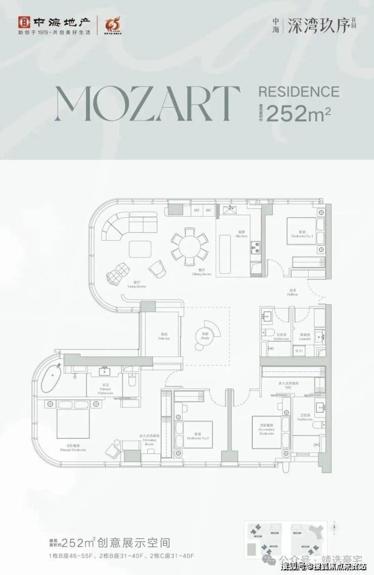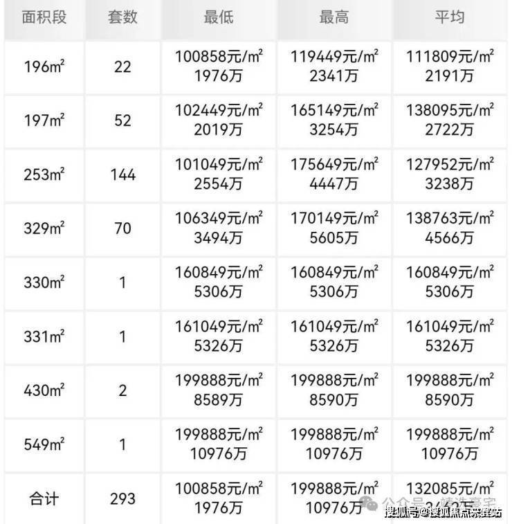 面积段:主力户型为196㎡、252㎡、328㎡大平层,少量400-600㎡顶层复式。