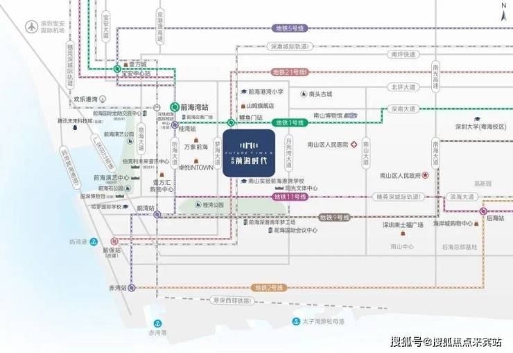 交通配套:深铁前海时代邻近地铁1号线鲤鱼门站600米,五条地铁交汇1/5/9/11号线,21号线(规划中),毗邻深铁前海国际枢纽中心(在建),以海陆空轨多维交通,畅联大湾区城际、全球主要城市;临近滨海大道、梦海大道主干道,也能通往深圳各大区域;