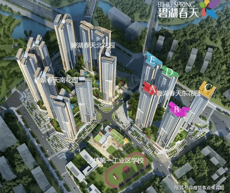 项目自身配建有12班幼儿园和30班公立小学,项目所属地块学区规划为汤坑小学、中山中学、新合学校(初中部)