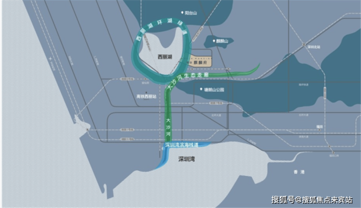 三山环抱,一湖为邻,千万顷珍稀原生资源,造就一席湖山大境;西丽湖环湖栈道+大沙河生态走廊+深圳湾环湖栈道,汇聚城市自然资源标地。