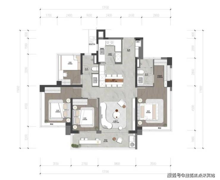 •LDKG一体化设计:餐厨、客厅、阳台,加上X空间全部打开,可融合为一个大尺度空间;