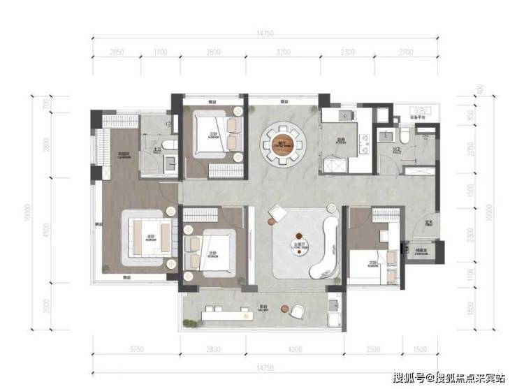 •高利用率空间:四叶草布局,减少过道占用,增大了公共区域的使用面积;