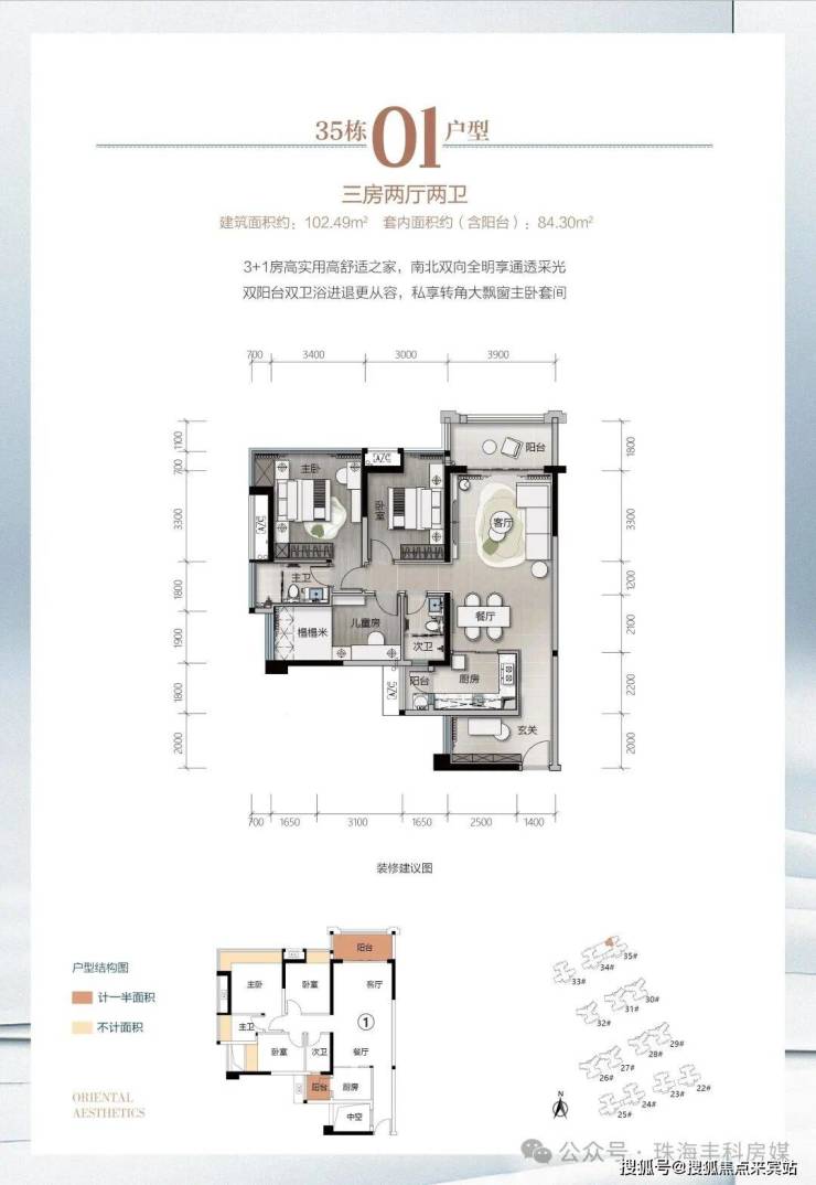 01户型102.49㎡逸骏半岛售楼处电话: 400-832-5521