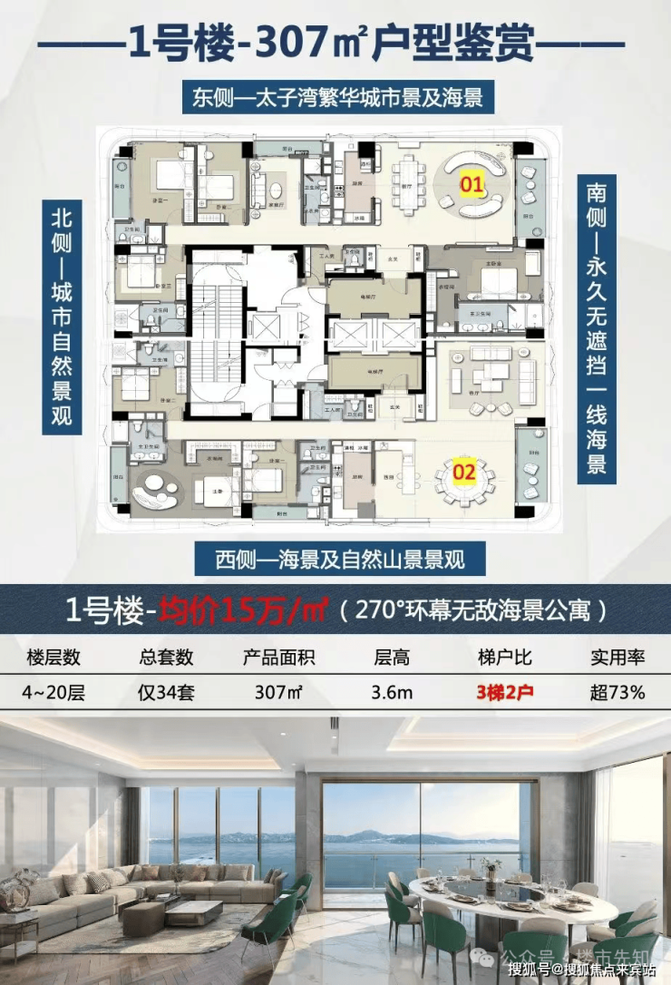【深圳太子湾鲸域】山海交响的立体都会,以时代笔触勾勒未来版图**立体经纬 通达世界的脉搏**如巨鲸跃海,项目以3.6米层高擎起云端视野,3梯2户的尊崇动线似流动的琴弦,串联起233-307㎡的鎏金空间。127个车位如珍珠嵌于地下,静候归航。