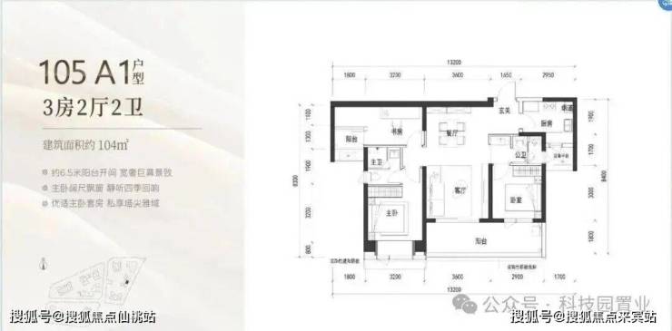 120㎡:客厅与卧室连通9.6㎡超大阳台,主卧带5.2㎡衣帽间,还有观景小阳台,主要为东南和西南朝向