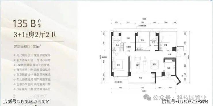 135㎡:横厅格局,南北双阳台设计,9.8㎡南向主阳台,三个房间面积分别达到9/11/15㎡,主卧带衣帽间和卫生间,舒适度非常好。