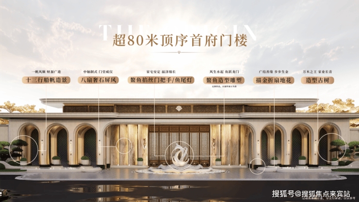 横跨80米、纵高13米的上亿奢宅大门营造超尺度视觉震撼,中西兼容的门第仪制,彰显对百年首府花园的致敬与回归,同时给予业主直观的体量感、尊崇感与文化感。