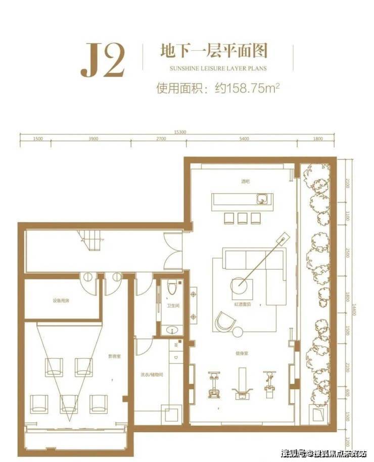地下一层:使用面积约 141.52㎡别墅J2户型: