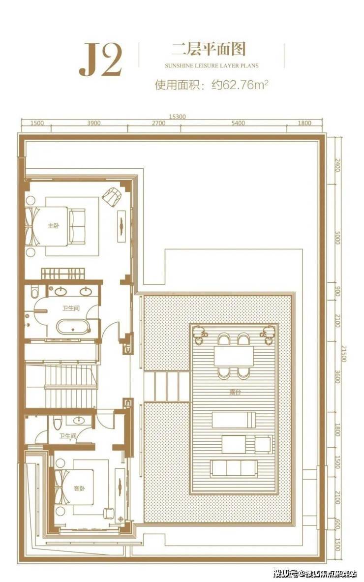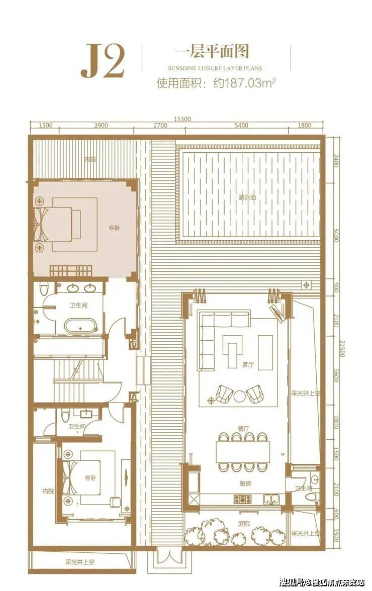 J1户型:四室三厅四卫(100平米院子、500平米院子)毛坯交付