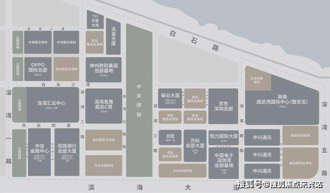 深圳湾超级总部基地(简称深超总)位于深圳市域核心地段,与香港隔海相望,是招商银行、中国电子、万科集团等世界500强企业总部。总占地面积117公顷,建筑面积约520万㎡,规划就业人口约30万,由深圳地铁集团和万科集团联合开发。