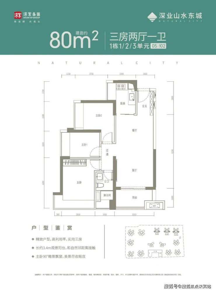 另外从市面流出的户型图来看,约80㎡户型做到了3房设计,卧室均带有飘窗,不会觉得空间拥挤。