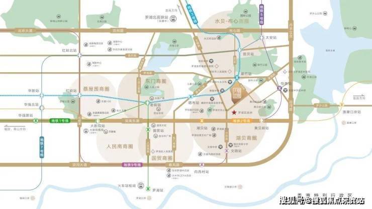 项目位于爱国路与华丽路交汇处,紧邻罗湖区行政中心,双地铁物业(3号线/24号线(规划中)翠竹站,25号线(规划中)木头龙站),6地铁环绕(1、2、3、5、24号线(规划中)25号线(规划中))。