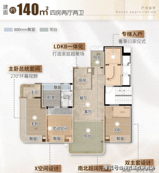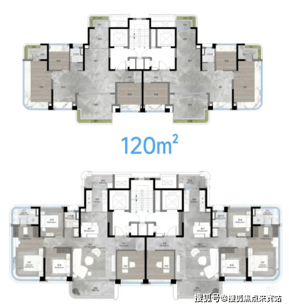 专梯专户:两梯两户,独立电梯厅入户,私密性强,相当于私家门厅。