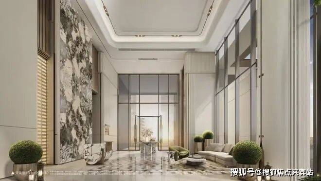 约9m高臻奢大堂,精研艺术与生活交融之美,匠心雕琢金属与石材质感,让归家之路成为艺术巡礼。
