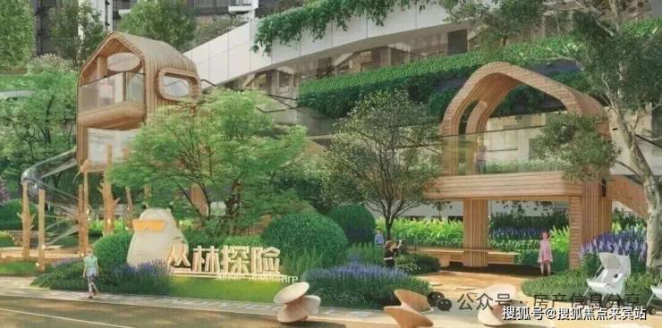 小区还对标了五星级酒店会所标准打造了约600㎡的泳池会所,配备了约10米长的儿童泳池与45米长的成人泳池,且配建了瞭望塔、树屋、攀岩墙、健身天地、功能球场等配套设施。