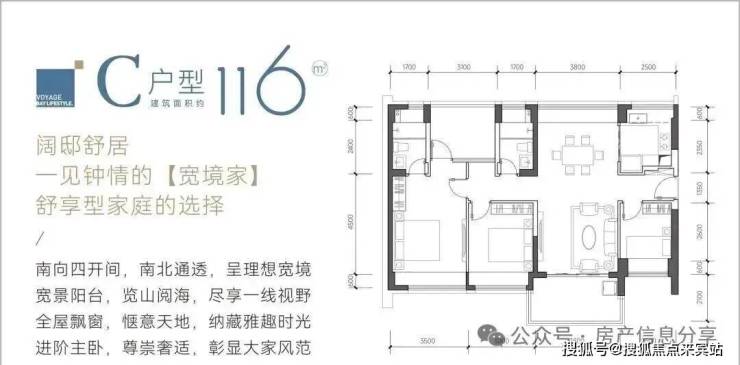 116㎡4房2卫:南北通格局,客厅开间3.8米主卧3.5米,有一个阳台改卧室;