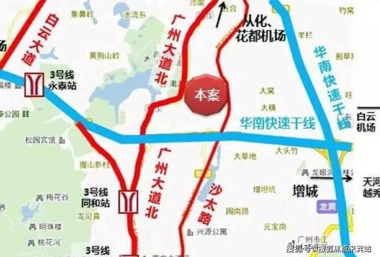 三号线北延线同和站 ,华南快速干线与北环高速合并后与广州大道相交,向东与广深高速连接起来,向西通过北环与实现了西连战略与佛山衔接。