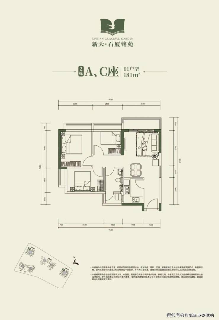 新天石厦铭苑共有三个面积段、五个户型