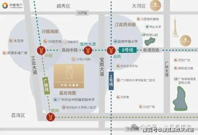 中旅天宸府位于海珠昌岗中路与宝岗大道交汇处,宝岗大道、工业大道、江南大道,海珠三大黄金走廊环绕,可谓是海珠核心地段。