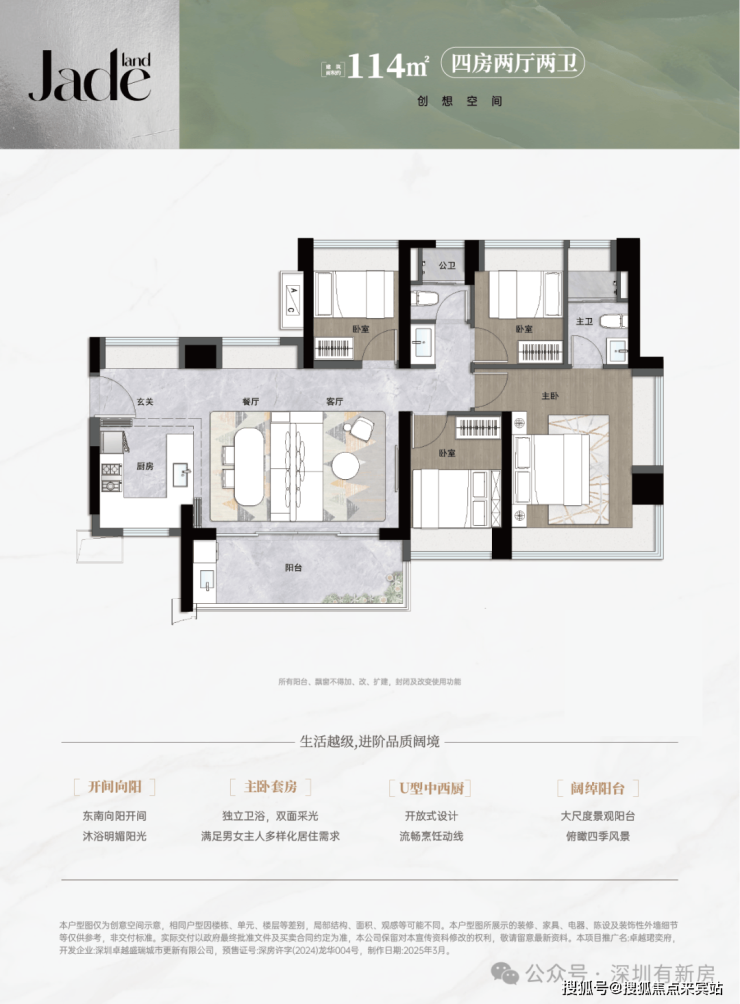 【114㎡4房2卫】真南北通+厨房U型布局+双卫配置 改善必看‼