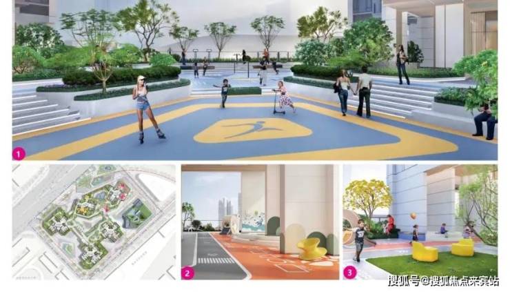 通过低区公共绿化,中区屋顶花园和丰富的架空活动空间,以及高区空中花园的多层级园林打造。打造屋顶花园、空中花园、亲子互动乐园、景观台阶、阳光草坪、架空层健身区等六大区域。
