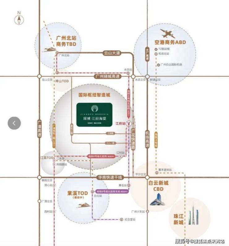 ·8号北延线/北延支线换乘站江府站(建设中):距离项目仅800米,五站白云新城,半小时通达中心城区