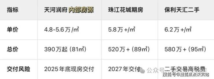 对比竞品:周边二手学区房(如珠江花城)单价破6万,天河润府精装现房仅4.8-5.6万/㎡,倒挂15%。