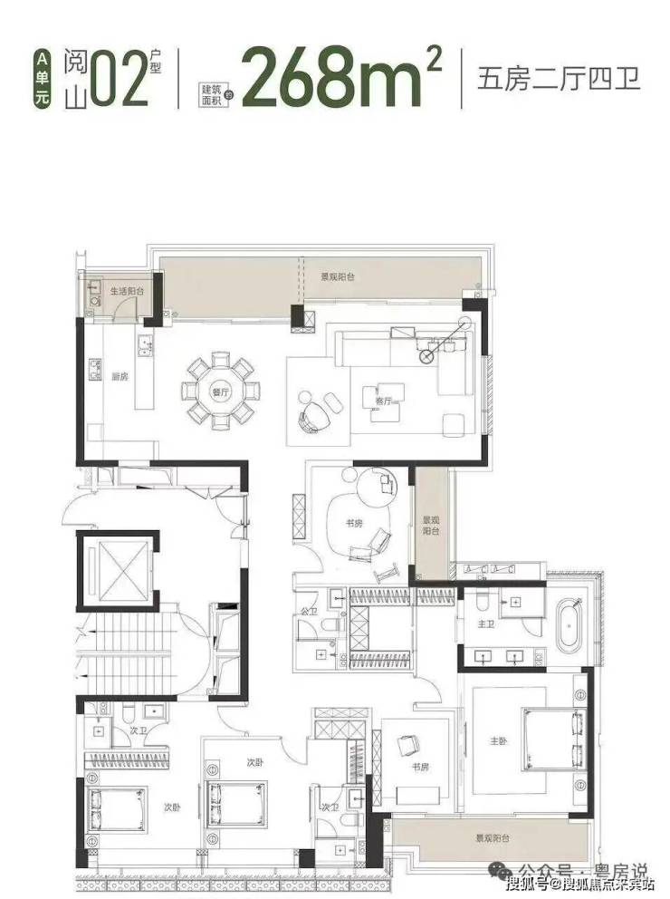 02户型 268平5房4卫 3套间 3.6米层高 专梯入户
