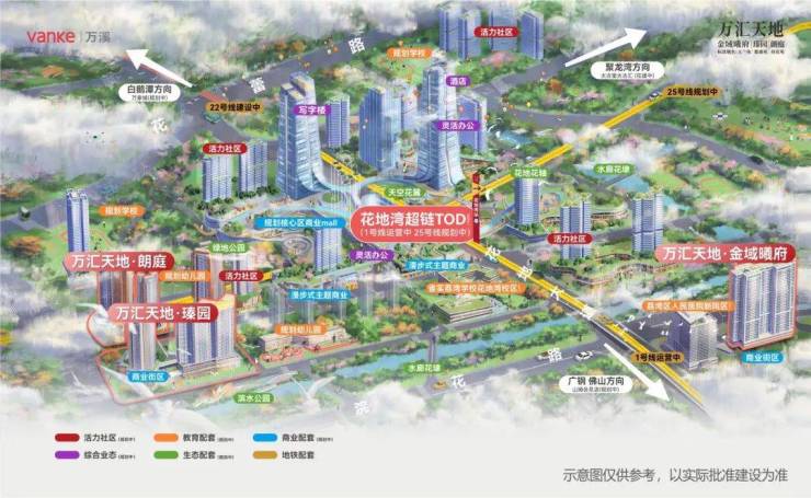 交通配套: 该项目周边拥有15条城市、城际轨道(规划中),无缝连接大湾区,距离1号线花地湾站仅500米,便捷的交通网络让居民出行更加便利。