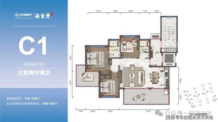 105-120㎡三房、132㎡四房