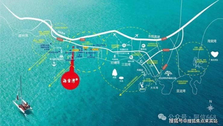 项目位于海南三亚红塘湾,属于离海三百米的位置,在三亚湾和崖州湾之间。项目东侧不远就是天涯小镇,距离三亚凤凰机场也比较近。