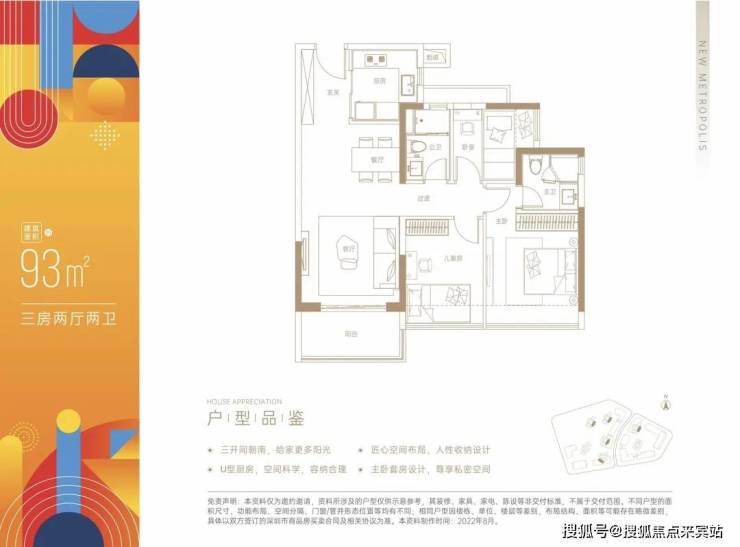 建面约93㎡三房两厅两卫