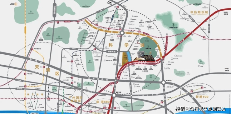 开创大道、开泰大道、绕城高速(香雪立交3公里)、开放大道。正在施工的开放大道规划成双向八车道快速路,是东部CBD主干道,被称为第二条“华南快速路”,将珠江新城——琶洲——金融城——鱼珠临港CBD——科学城——中新知识城串联,形成黄金核心经济带,加强了各商圈的紧密联系,将助推科学城承接更多珠江新城经济产业外溢的需求。