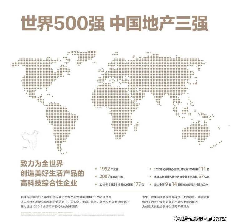 碧桂园:世界500强,中国地产三强,现已打造过2000个高质量项目,约160万业主选择在碧桂园安居乐业选大品牌,安家更放心