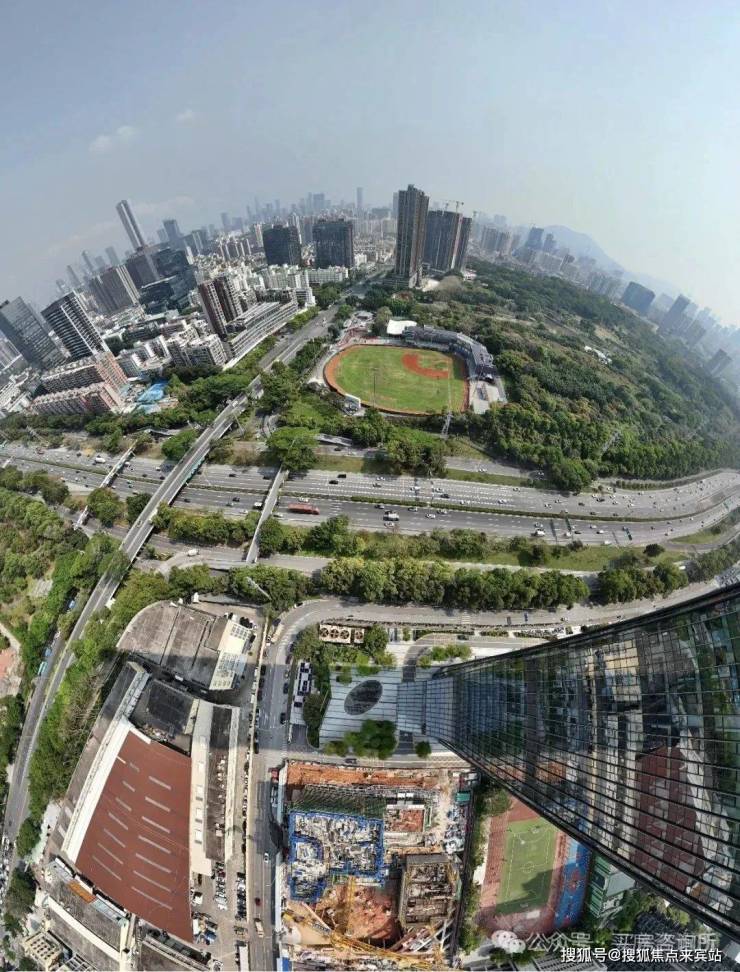 △以上为95-105㎡东北朝向视野,能看到远处的留仙洞总部基地跟南山科技园,也是视野最开阔的一个朝向但是朝向是东北(以上为航拍视野仅供参考)