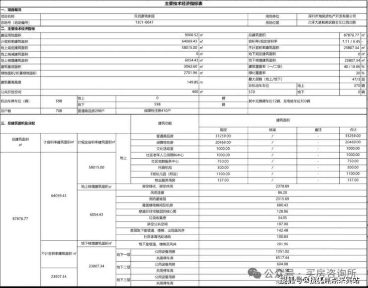 小区占地面积仅9006.52平米,共 3 栋住宅楼,其中2栋21-47层商品房住宅、1 栋 46层保障房。总户数708户,普通商品房298户,保障性住房410户。