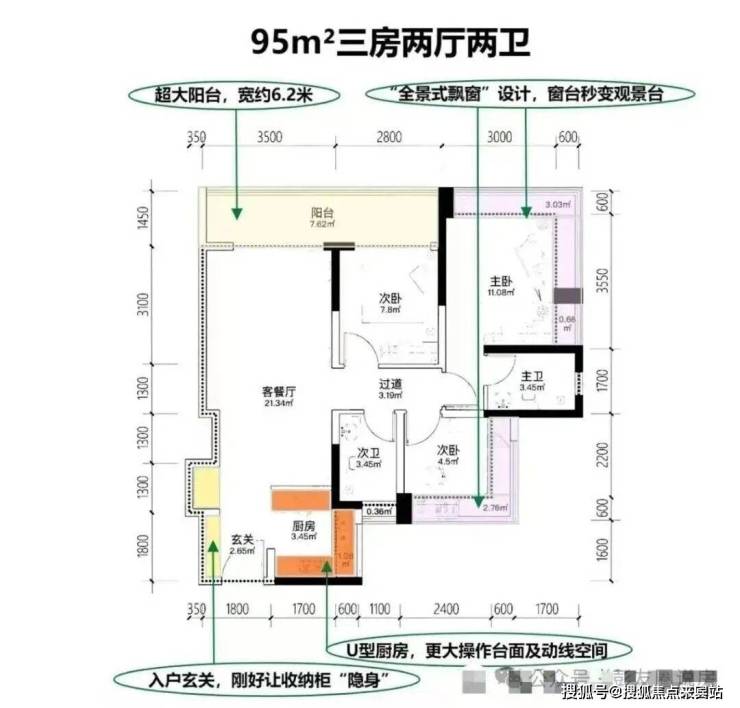 2. 户型设计:新规高拓,得房率95%-97%,空间零浪费