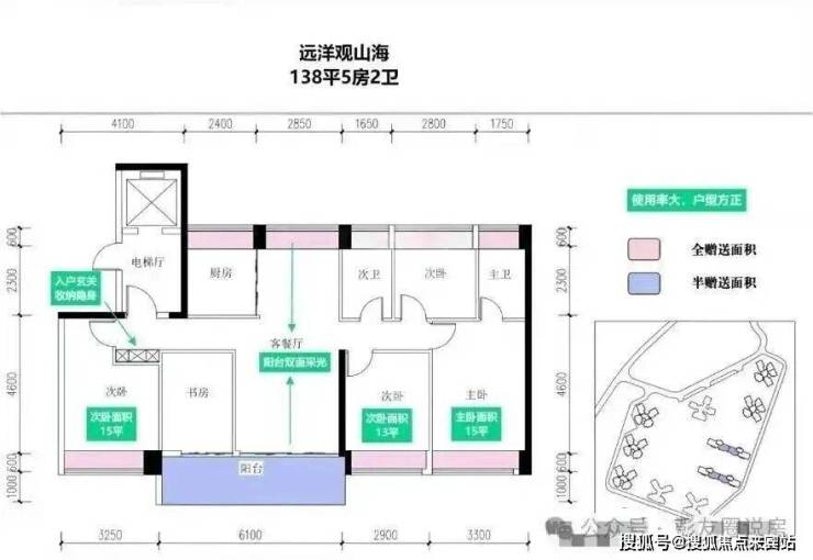 这次推出的138㎡为小区楼王3/4栋,17层2梯2户板楼,带独立电梯厅,可以做5房,赠送后得房率去到94-97%,预计单价10万/㎡左右,总价1300万左右。