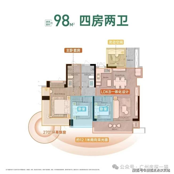 建面98平户型,是88平放大升级版