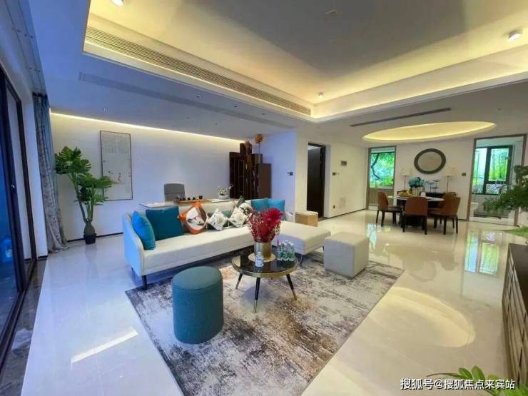 中央水系景观以逐浪庭,渠水庭,银锭桥,浮云庭,月亮门,结合三亚丰富的热带植被花卉进行绿化铺陈,打造中正大气、绿意盎然、小桥流水、生机勃勃动静结合的项目建筑景观全系风貌。
