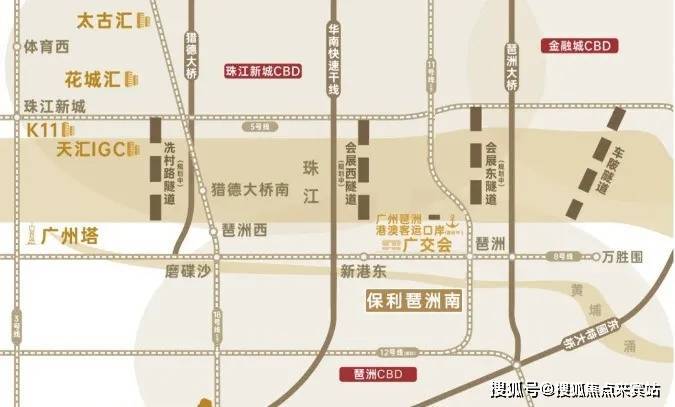 保利琶洲南项目的最大优势,无疑是地段,其位于琶洲南TOD东侧,现状是大围公园,北边是黄埔涌对望广交会展馆,南边是新滘路,西边是赤沙旧改,东边是科韵路。
