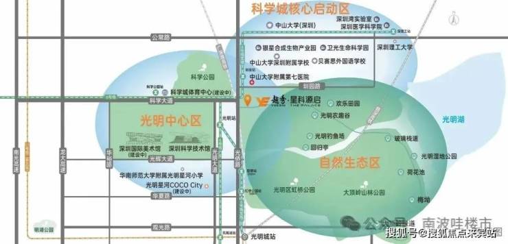 越秀星汇珑府,位于光明区新湖街道光侨路与科学大道交汇处东南侧,地处光明中心区板块,西北侧与科学公园北翼相邻,东南侧则是充满欢乐的光明欢乐田园,北侧靠近中山大学深圳校区及其附属第七医院,南面距离光明高铁站仅4.8公里。越秀星科源启售楼处电话:400-150-5057