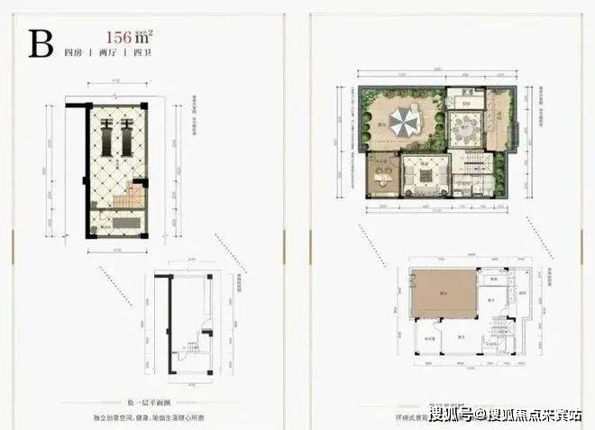 136㎡合院C户型户内庭院面积近60㎡,饱览天地的主庭院、一角风韵的下沉式庭院、情景交融的超大露台……各有情致,趣意盎然。
