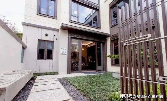 合院采用岭南设计风格,270°风光围合,用石材铺装,以草坪加灌木、乔木的方式创造出了多重立体植物的庭院空间,以石柱、月洞门等景观小品加以点缀。
